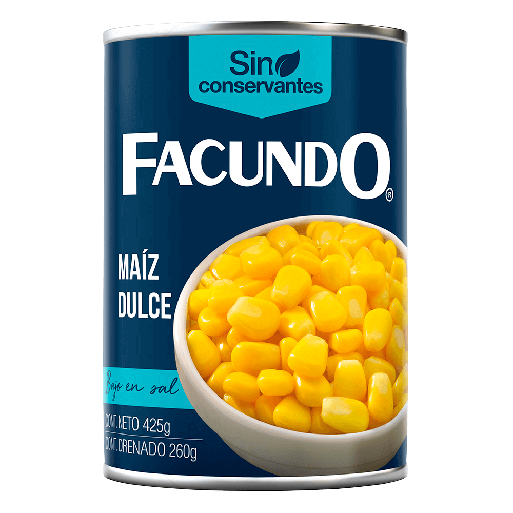 Classic sweet corn, with 35% less salt. Ideal for those who want to consume less sodium. Prepare easy and healthy meals with Facundo!
