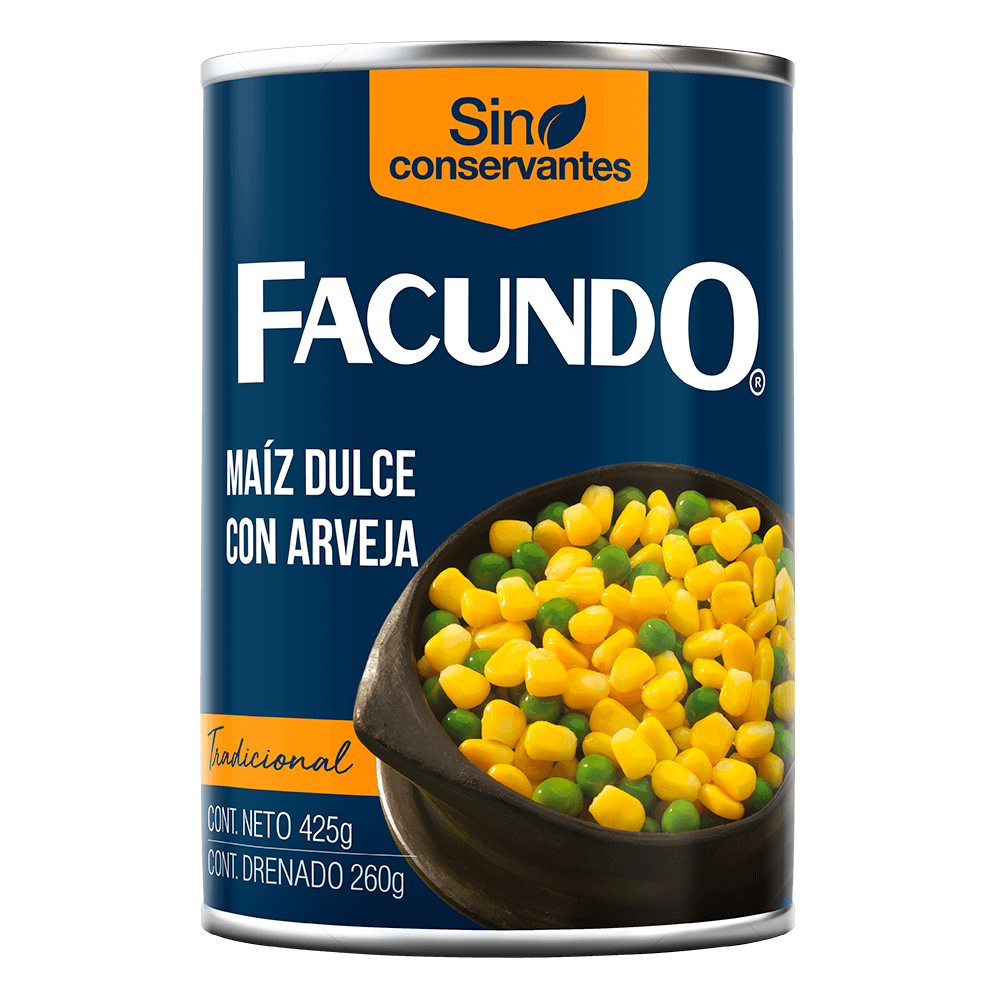 Sweet corn with peas. Use it in salads, rice or as a complement to your meals. A delicious and ready to eat combination!